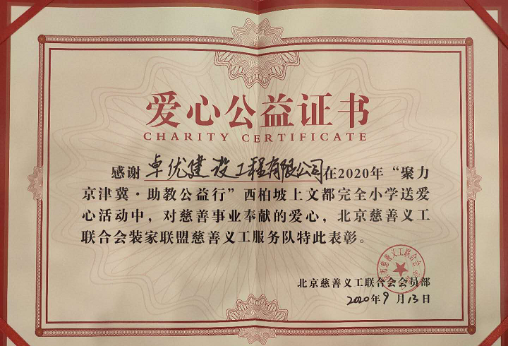 愛心點(diǎn)燃希望之光,真情托起明日太陽(yáng)。卓?jī)?yōu)建設(shè)集團(tuán)呼吁大家不要再做公益的路人,我們應(yīng)該把公益這條路延續(xù)下去,做未來(lái)的引路人。卓?jī)?yōu)建設(shè)集團(tuán)發(fā)展至今,從扶貧助愛到此次愛心公益的合作達(dá)成,無(wú)疑又是一個(gè)新的起航。