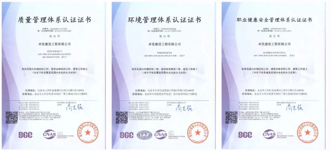 此次認證的成功通過是卓優(yōu)建設集團喬遷新址后,發(fā)展進程上又一新的里程碑,標志著我們邁向了新的時代,公司管理已走向正規(guī)化、系統(tǒng)化、成熟化。回顧過去,振奮人心,展望未來,更是斗志昂揚。