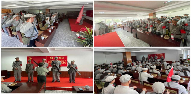 “我志愿加入中國共產(chǎn)黨,擁護黨的綱領(lǐng),遵守黨的章程,履行黨員義務(wù),執(zhí)行黨的決定,嚴守黨的紀律,保守黨的秘密,對黨忠誠,積極工作,為共產(chǎn)主義奮斗終身,隨時準備為黨和人民犧牲一切,永不叛黨。”嘹亮的宣誓聲回蕩著,高舉的右手、鮮紅的黨旗、鏗鏘的誓詞,讓我們熱血澎湃,心靈受到震撼和洗禮。
