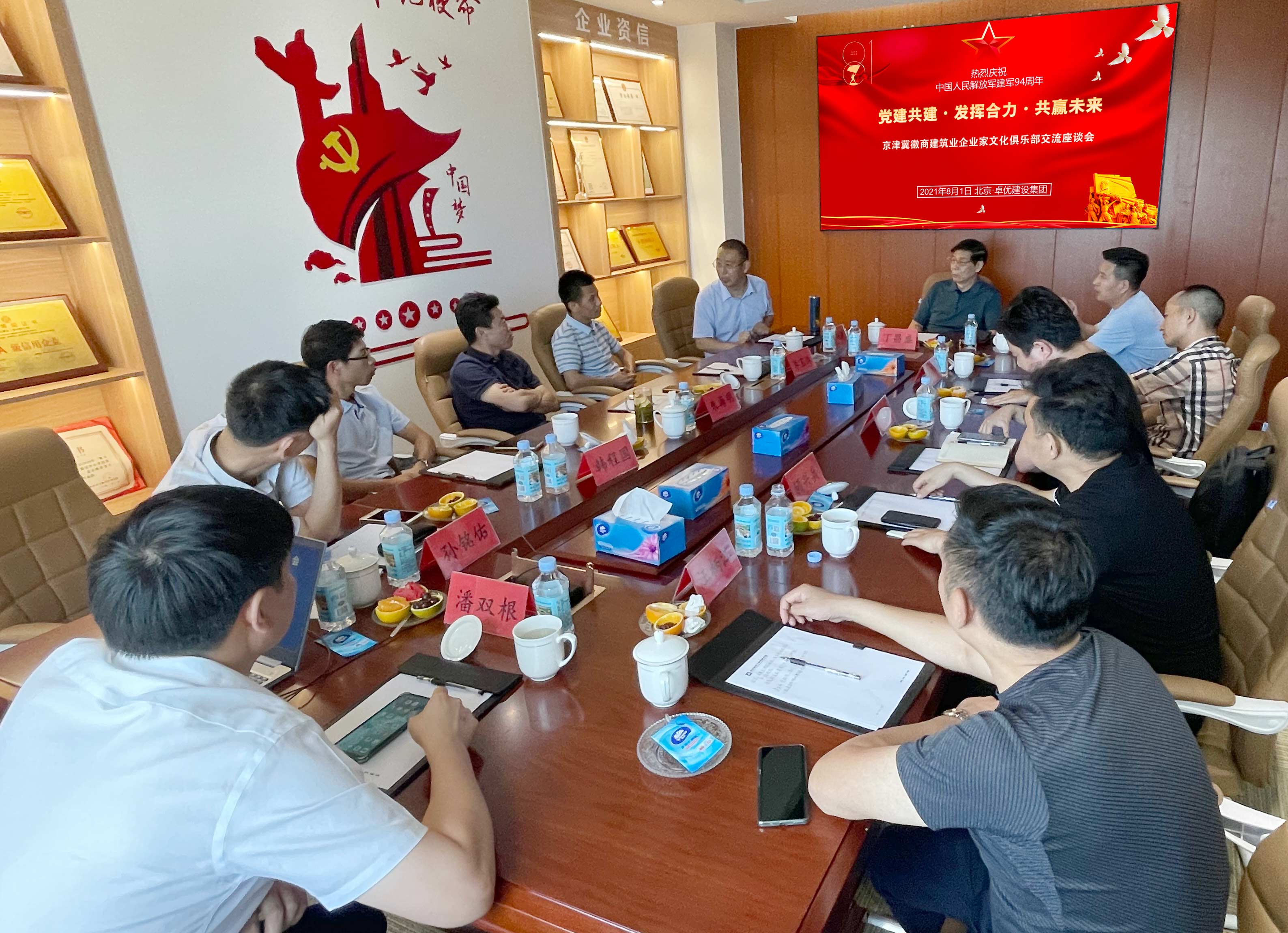 黨建共建,發(fā)揮合力,共贏未來。2021年8月1日京津冀徽商建筑業(yè)企業(yè)家文化俱樂部座談會暨慶八一主題活動在北京卓優(yōu)建設(shè)集團(tuán)有限公司舉行。